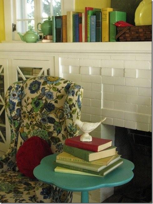 Ohhhh I love those colourful books on that fireplace mantel! What a fun thing to stare at all day!